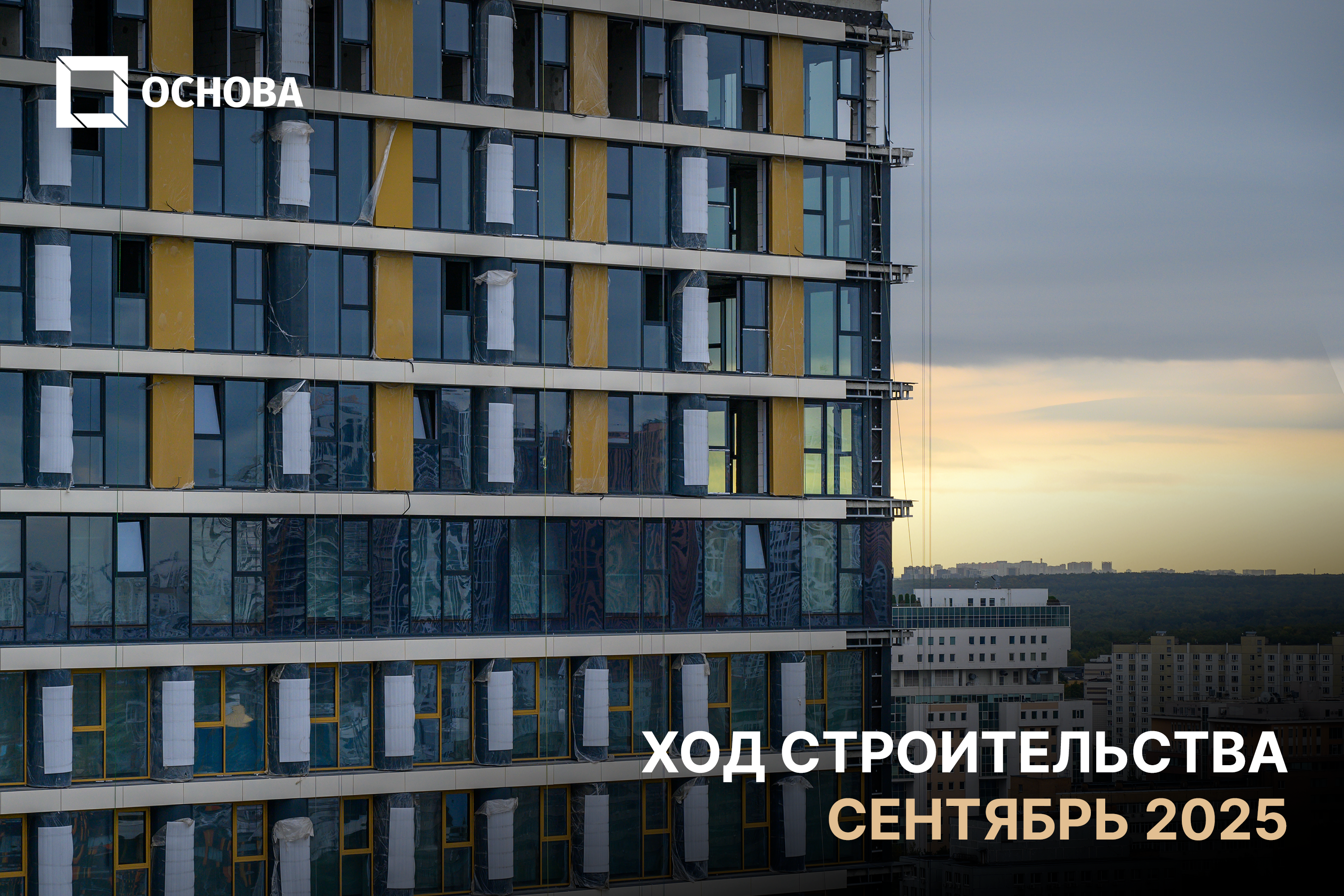 К первым числам октября фасадные работы и остекление во всех четырех секциях завершены на 83%. На 25-м этаже выполняется монтаж витражного ограждения клубного пространства Sky Area.